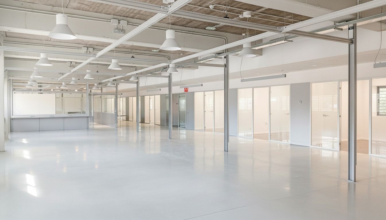 A l’interior, s’han instal·lat mamperes de vidre, sostres registrables i totes les instal·lacions tècniques necessàries per garantir confort, funcionalitat i eficiència energètica.
