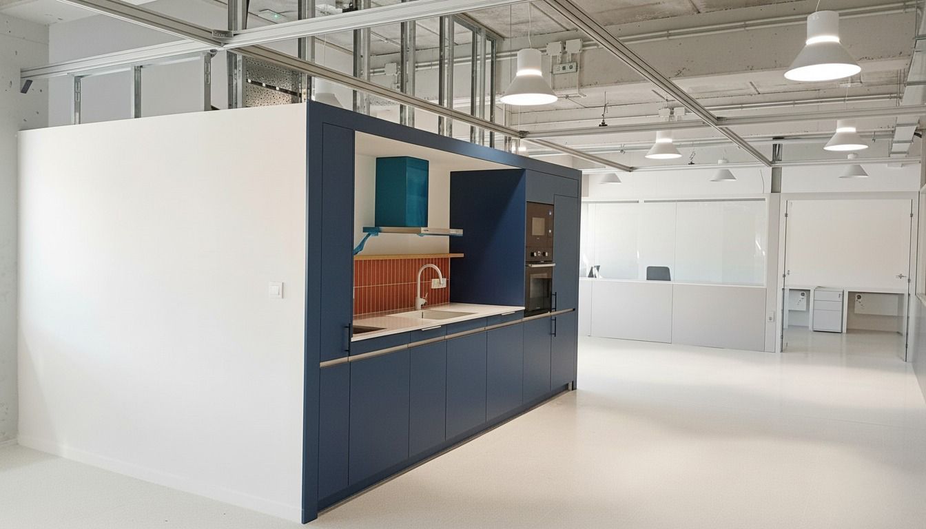També s’han incorporat una cuina i un bany per a proves experimentals, i un sistema de rails metàl·lics al sostre que permet la col·locació de panells mòbils per adaptar l’espai a les necessitats de cada investigació.